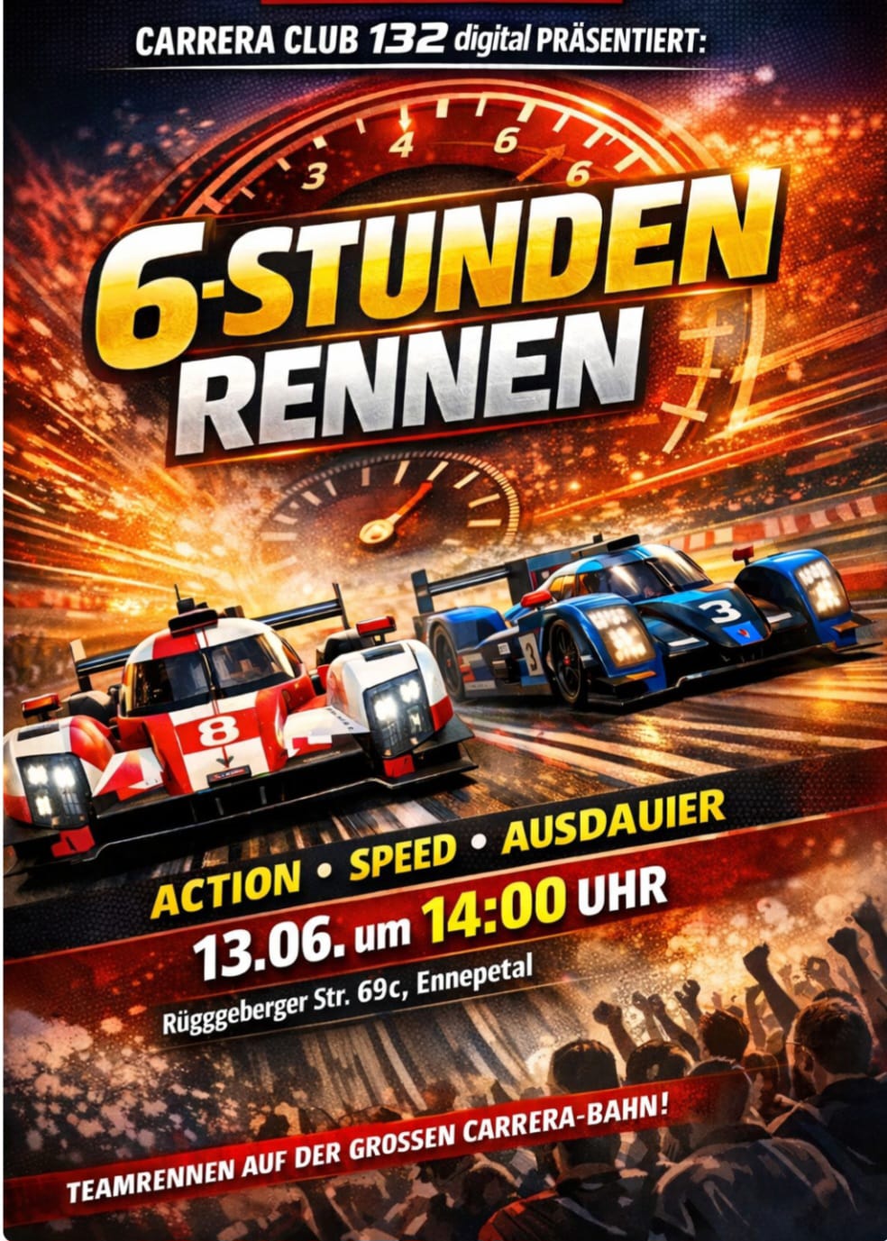 Am 13. Juni 2026 wird es auf Homberge rasant – und zwar im besten Sinne! Beim großen Carrera-Bahn-Rennen des ACAS – Automobilclub Alt-Schwelm treten sechs Teams sechs Stunden lang gegeneinander an. Es wird gefachsimpelt, angefeuert, mitgefiebert – und vor allem gefahren: Ca. 5.000 Runden werden an diesem Tag erwartet! Was nach Spiel und Spaß klingt, hat für uns als ehrenamtlicher Verein einen ganz besonderen Wert. Denn wir möchten die Energie dieses Events nutzen, um gemeinsam mit engagierten Partnerinnen und Partnern noch  mehr Gutes zu bewirken.